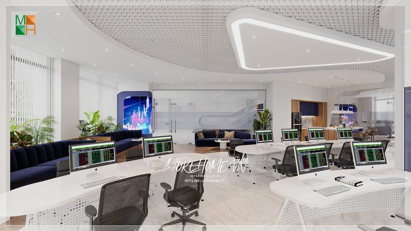 Nội thất văn phòng được thiết kế theo phong cách hiện đại, trẻ trung và chuyên nghiệp.